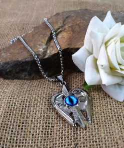 Silver Plated Angel Wings Cross Blue Eye Pendant with Chain Necklace for Men & Boys
