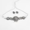 Elevate your traditional charm with this Oxidised Silver Choker with Matching Jhumka Earrings for Women, a perfect blend of classic elegance and contemporary appeal. Expertly crafted from high-quality brass with an oxidised silver finish, this jewelry set is designed to add grace and sophistication to your look.